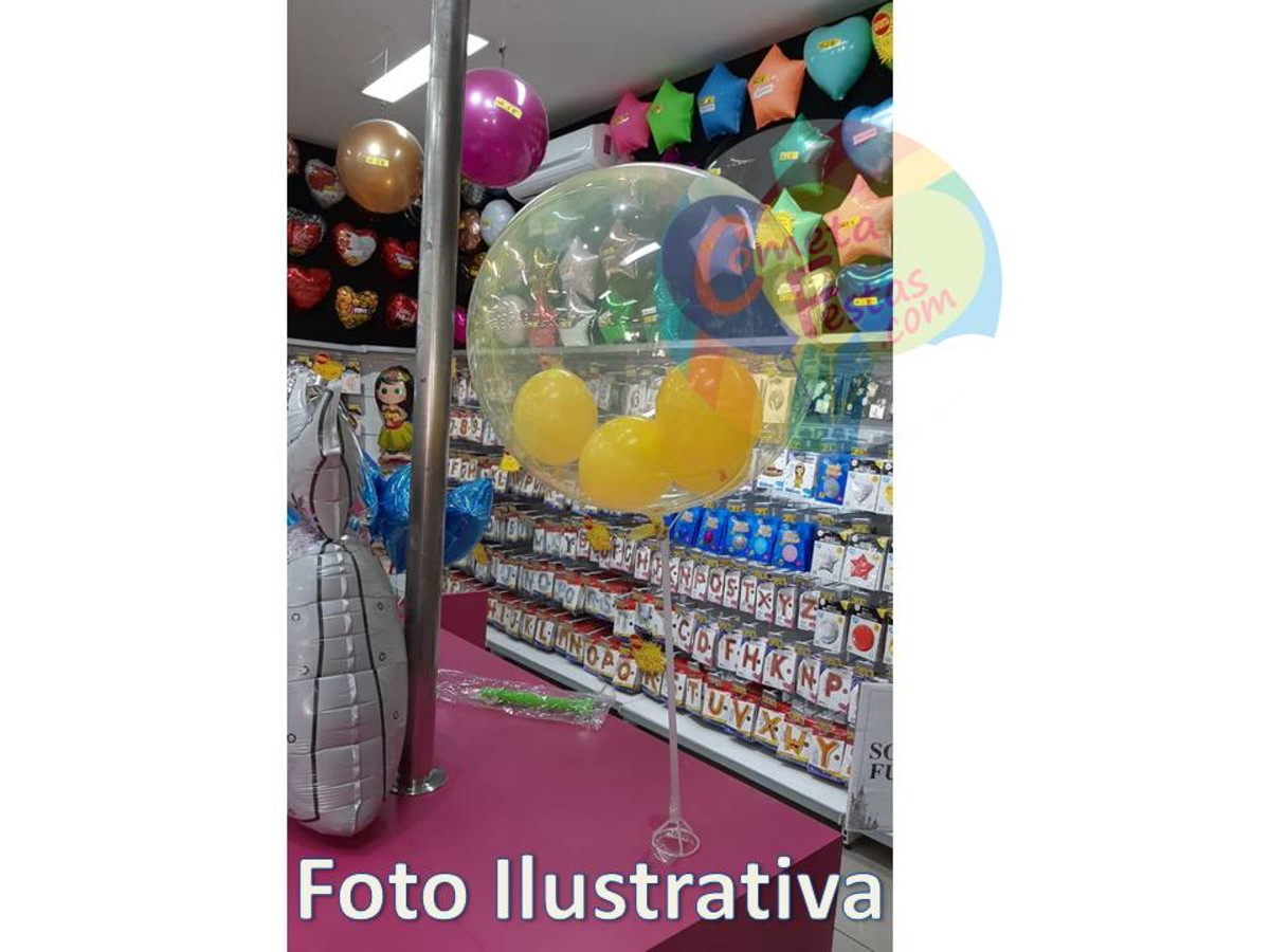 Pode ser enchido com gás hélio ou ar comum. Só encher e ir puxando nas laterais, ir passando a mão até ele ter formato arredondado.