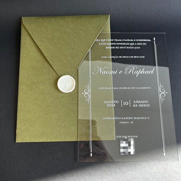 Convite Appreciate Vertical com Acetato 15x21cm e Lacre Cera