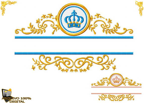 Matriz Bordada Moldura Split com Coroa Entre Meios para Nome