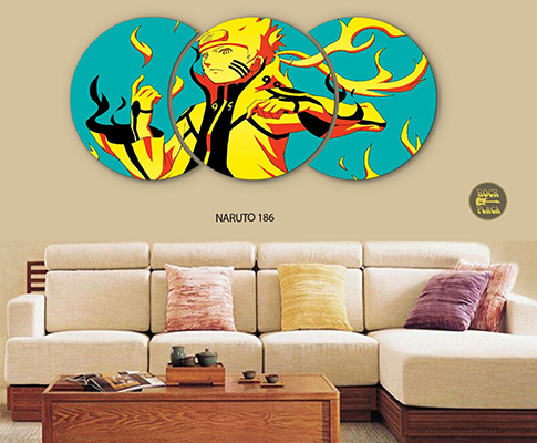 Quadro Mosaico Decorativo Naruto Painel com 3 Peças Circular 1,32x61cm (Modelo Artesanal Exclusivo)