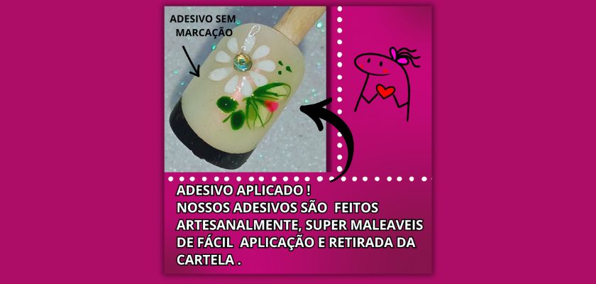 -Trabalhamos com adesivos de unhas 100% artesanais, de otima qualidade com modelos lindos coloridos e variados ( não trabalhamos com adesivos 3D).