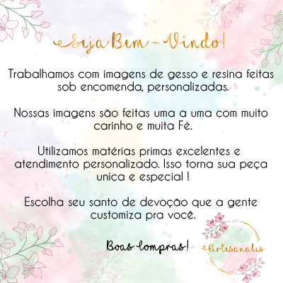 Antes de fechar seu pedido verifique todos os detalhes. Certifique-se do tamanho da peça meça com uma régua. Lembre-se que você está adquirindo uma peça artesanal e, portanto, única. De uma para outra, do mesmo modelo pode haver pequenas diferenças como tom da cor, ou algum pequeno detalhe.
