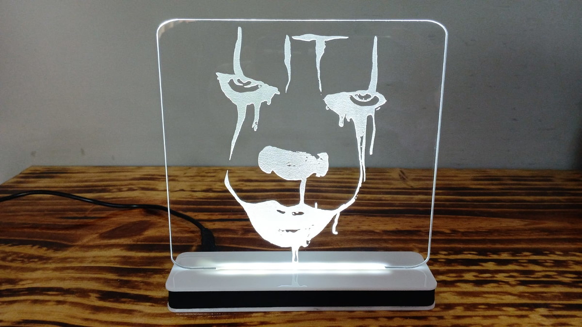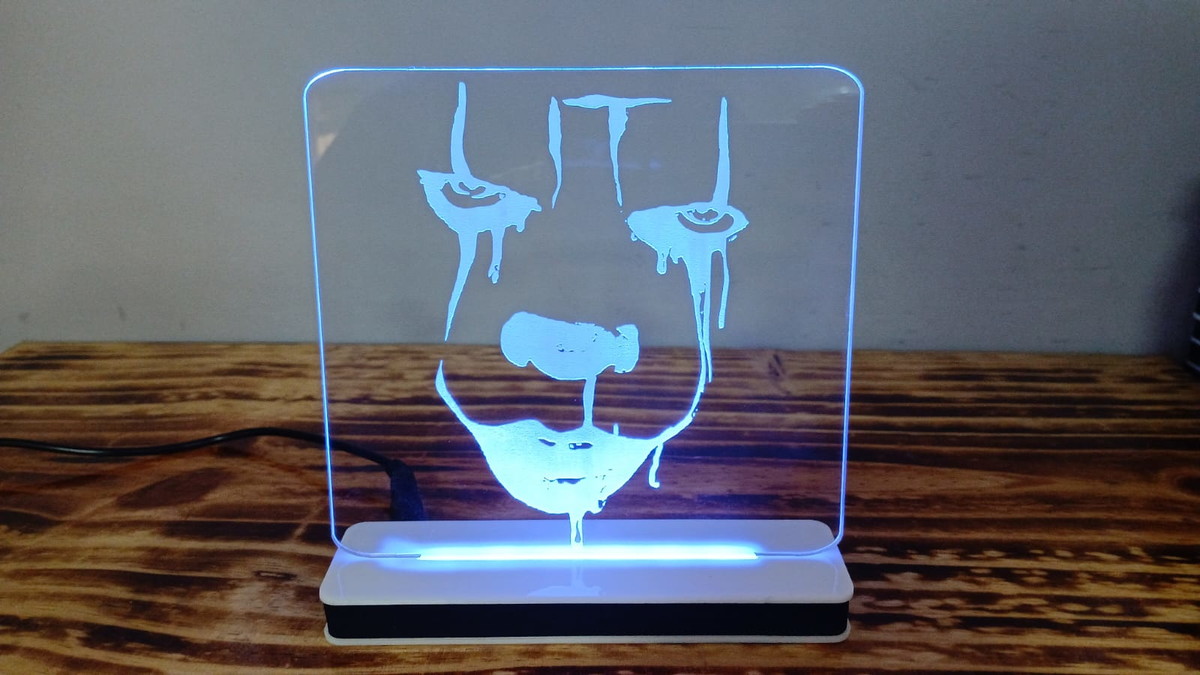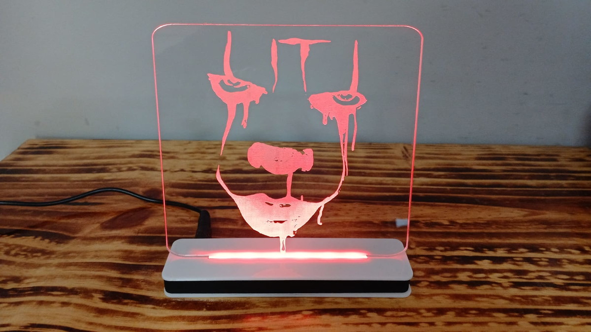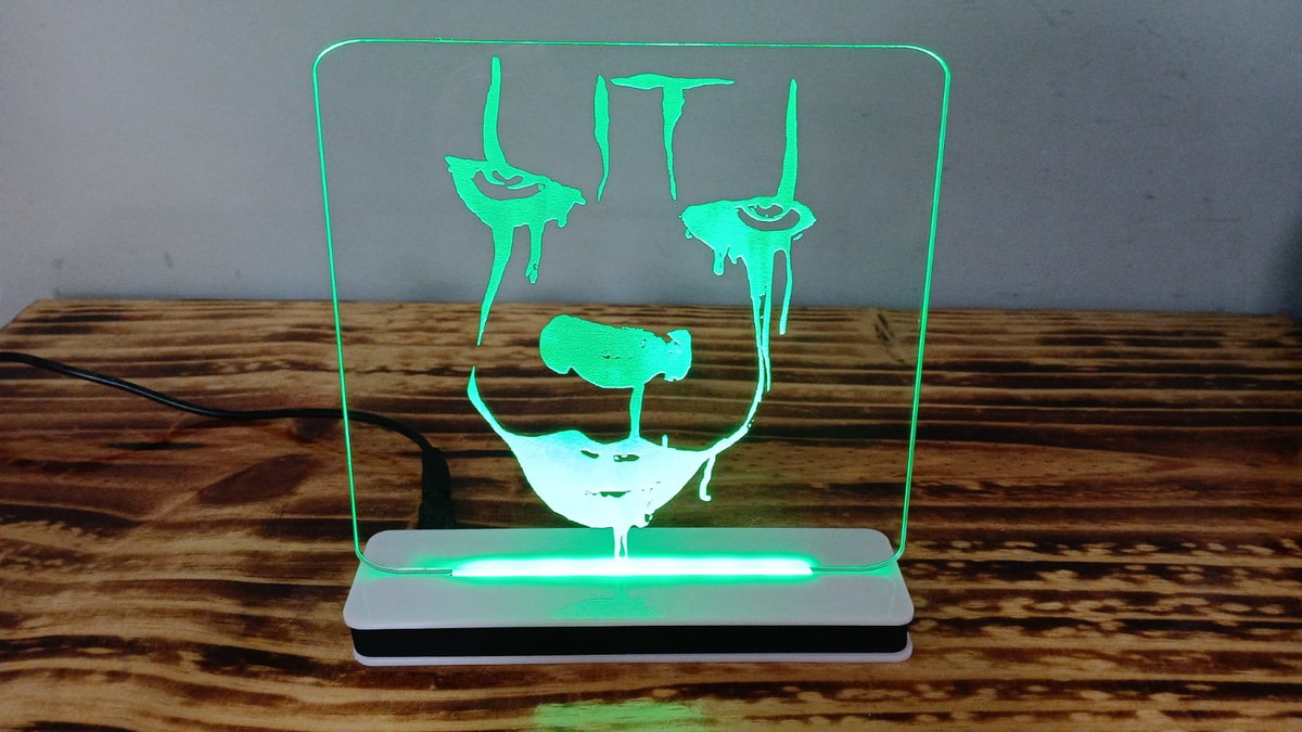 A Luminária tem um lindo efeito 3D de ilusão óptica, esse efeito se torna possível devido a luz acoplada em sua base que é projetada sobre o desenho de acrílico transformando-a em um objeto 3D iluminado.