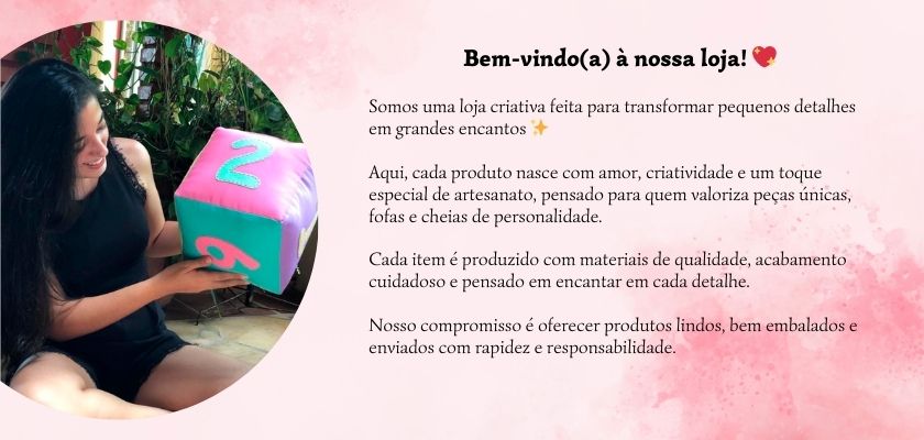 Bem-vindo(a) à nossa loja! Somos uma loja criativa feita para transformar pequenos detalhes em grandes encantos. Aqui, cada produto nasce com amor, criatividad...ver mais