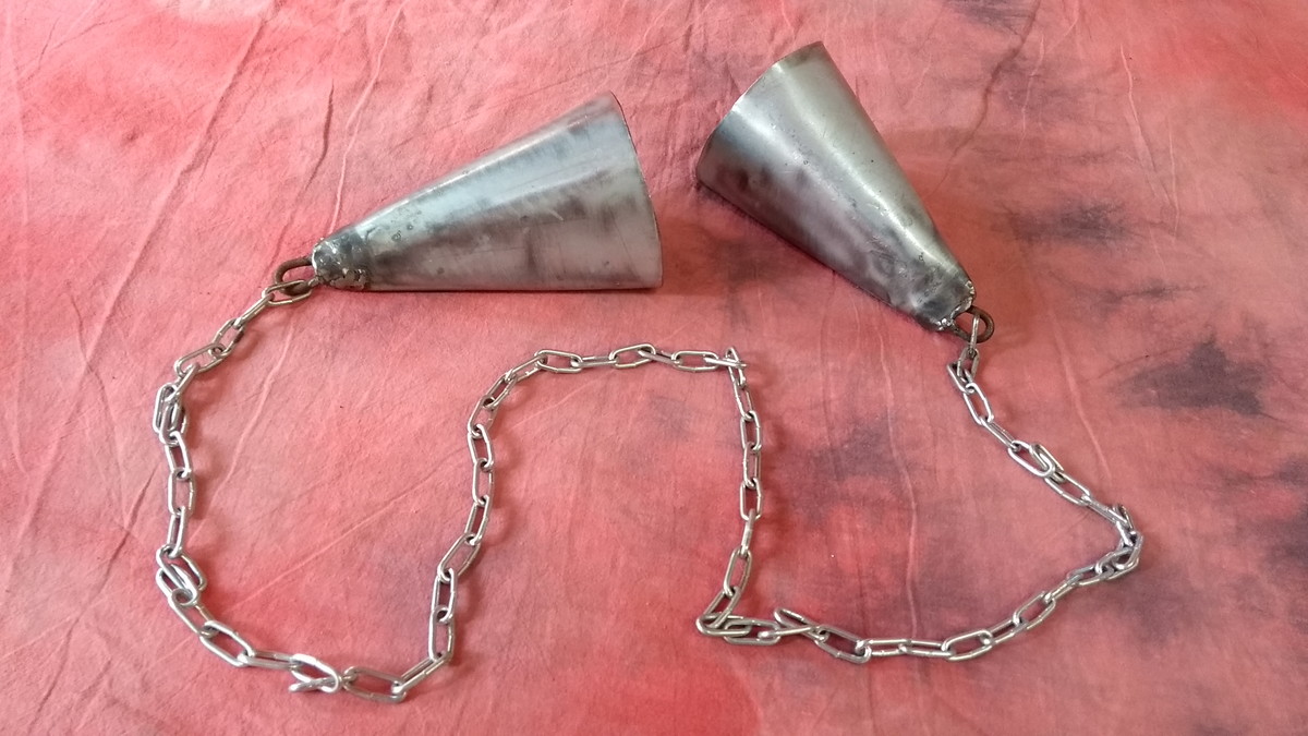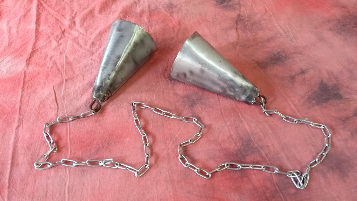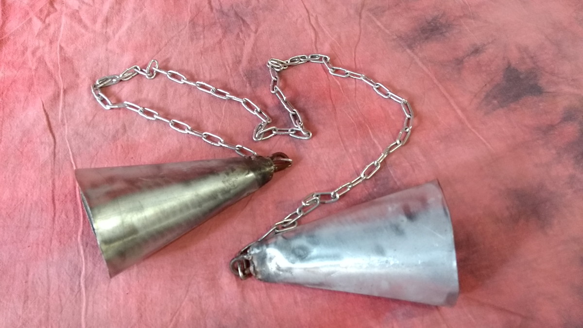Alacorô do orixa Ogun feito artesanal em ferro chapa e corrente medida corrente 100 cm,, altura da peça 15 de comprimento x 9 cm de boca e 5 altura pesa aproximadamente 700 gr. sem o pacote