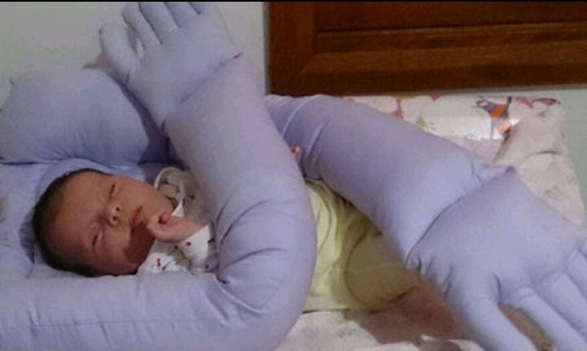 Possui dois braços longos que envolvem o bebê.