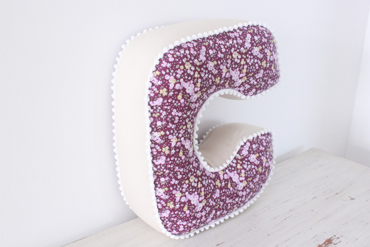 Confeccionamos todas as letras do alfabeto e o tecido pode ser escolhido em nosso mostruário de estampas no link abaixo.