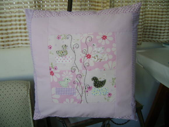Linda e delicada almofada em patchwork.