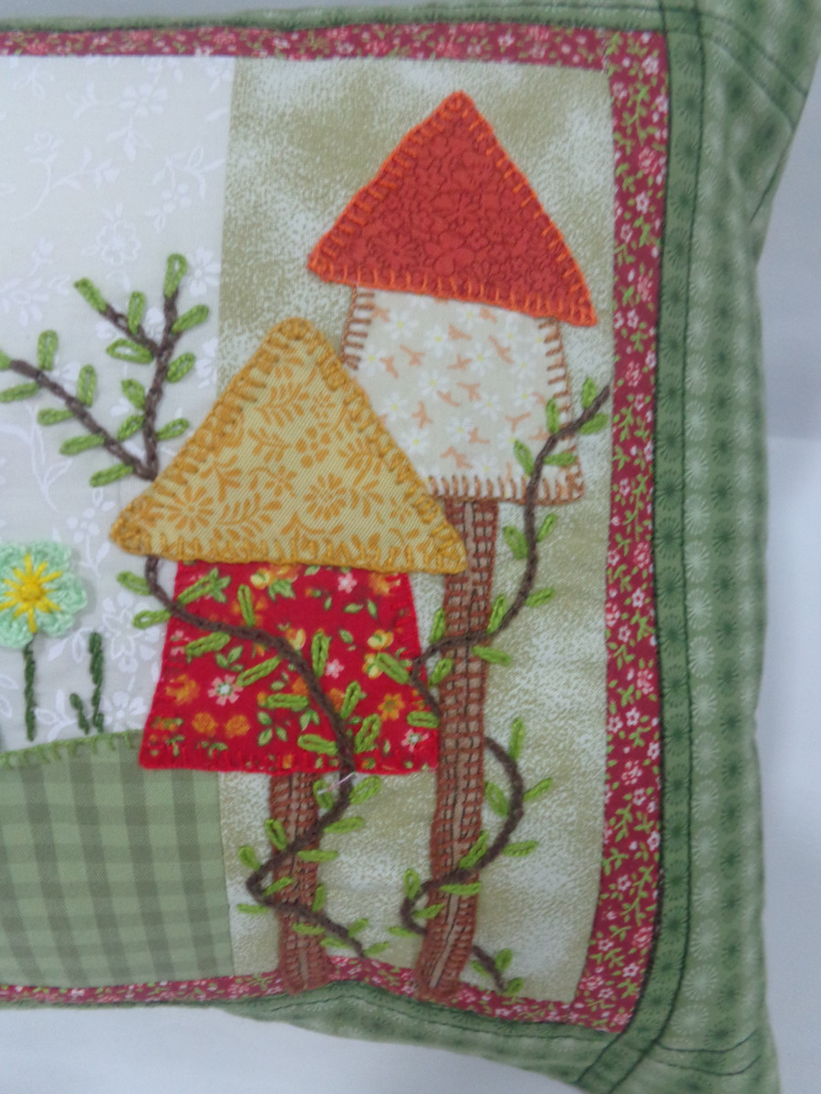 Almofada retangular média, decorada com patchwork e bordada à.`mão. Fica linda para decorar seu sofá ou sua cama.