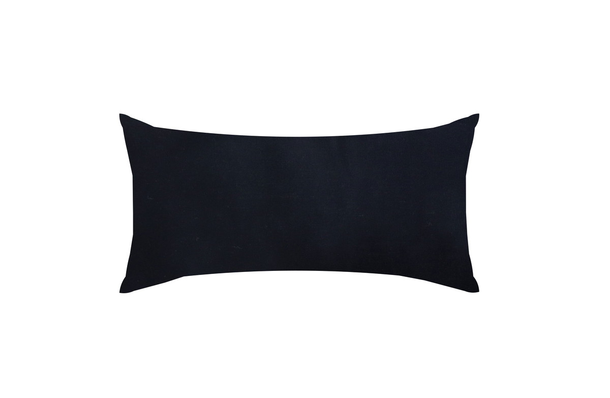 - Almofada na cor PRETA, produzida com o tecido TEXTOLEEN e medindo 25x48cm.