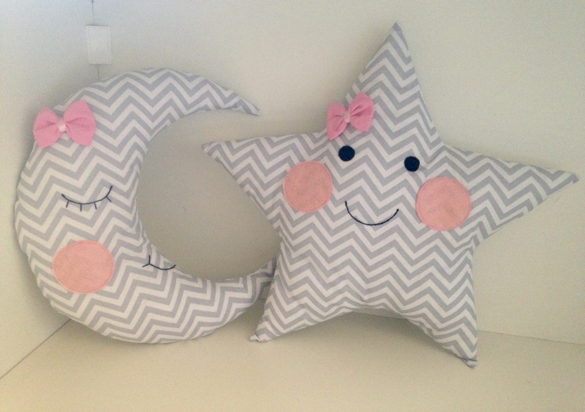 Com elementos do céu da noite esse duo de almofadas com formato de lua e estrela deixará aquele cantinho especial mais aconchegante!