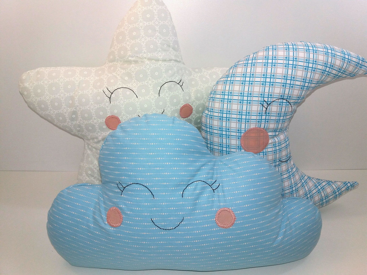 Almofadas confeccionadas com tricoline, forrada com material sintético, preenchida com fibra sintética antialérgica.
