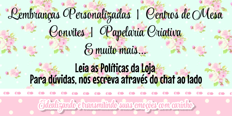 O EFETIVAR A COMPRA O COMPRADOR CONCORDA COM OS TERMOS ABAIXO, PORTANTO, LEIA COM ATENÇÃO. O comprador efetivará o pedido e aguardará o envio do frete e opções de pagamento, este envio pode ocorrer em até 24 horas. O comprador deverá escolher a forma de frete e em seguida forma de pagamento. Após confirmação do pagamento será solicitados os dados para criação da arte. (Tema, nome, idade e data). Todas as nossas peças são feitas sob encomenda. O envio pode ser feito via Sedex ou PAC (custos de envio são por conta do comprador). O código de rastreamento será enviado por e-mail assim que o pedido for postado. Qualquer dúvida, estamos à disposição de esclarecimentos.