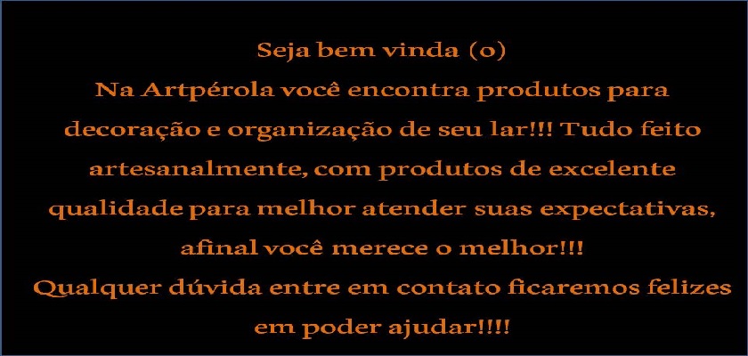 Seja Bem Vinda (o) Na Artpérola você encontra produtos para decoração e organização de seu lar!!! Tudo feito artesanalmente, com produtos de excelente qualidad...ver mais