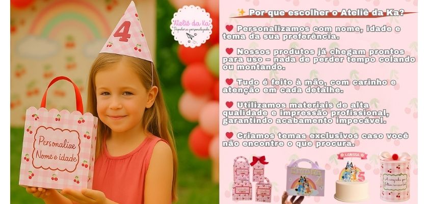É fundamental que as informações de personalização (nome, idade, cores ou tema escolhido) sejam enviadas no momento da compra.
