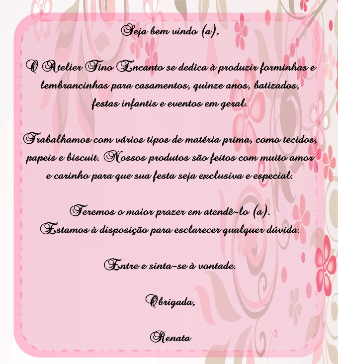 Arquivos de cortes enviados em até 24 h após a confimação da compra Não cancelamos a compra e ne devolvemos o valor pago, após o envio do arquivo Para abrir o aqruivo de corte é necessario ter o program stdudio instalado no seu computador Não modificamos a arte do arquivo de corte O envio do aqruivo é feito para o email cadastrado na plataforma do elo7.