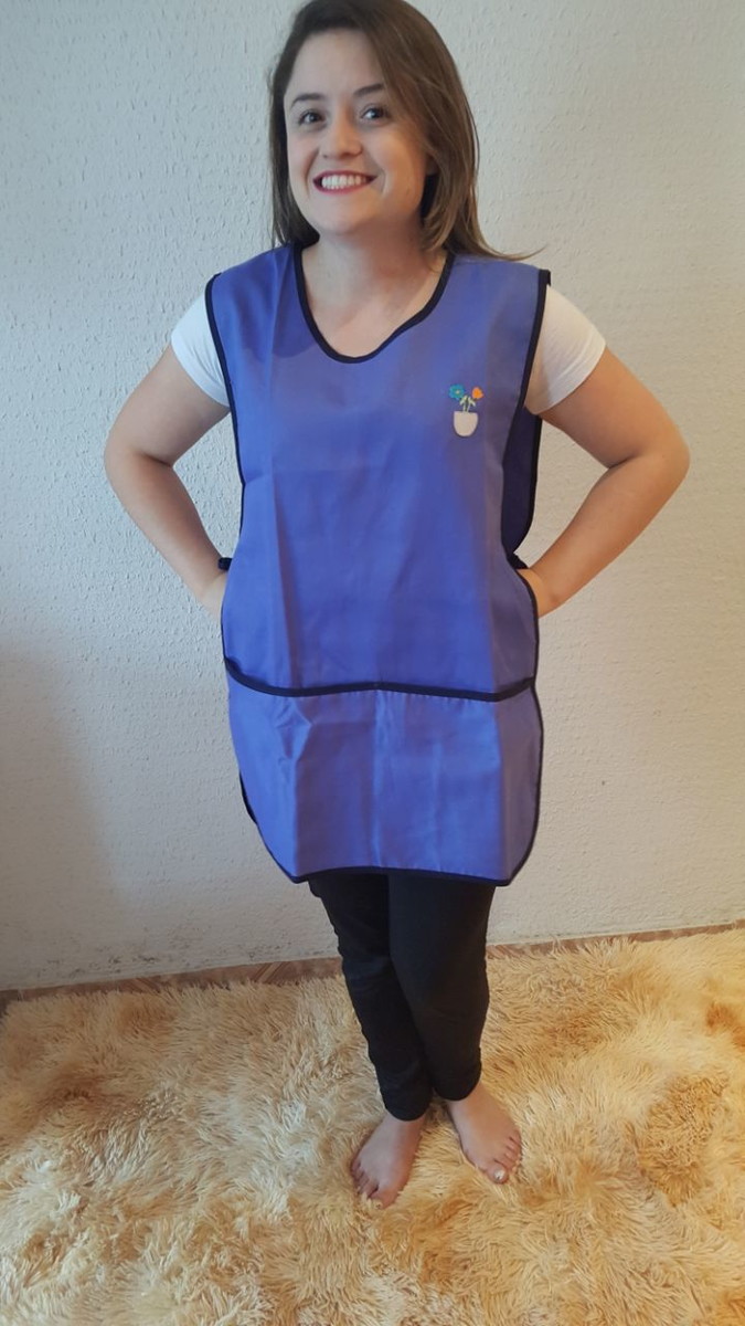 Bata feita em tecido Oxford, porém um pouco mais grosso com dois bolsos frontais.