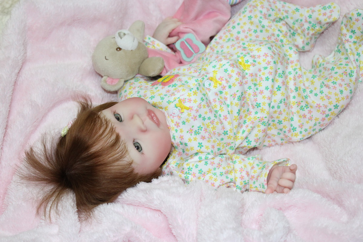 Sua pintura é delicada com manchinhas de frio, veias e sombreamentos tornando-a semelhante a um bebê real.