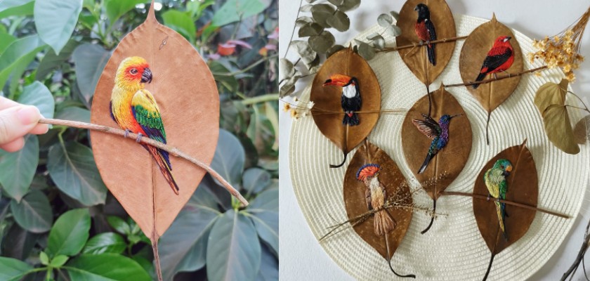 Pássaro Bem te vi bordado na folha seca - Presente para nossa casa |