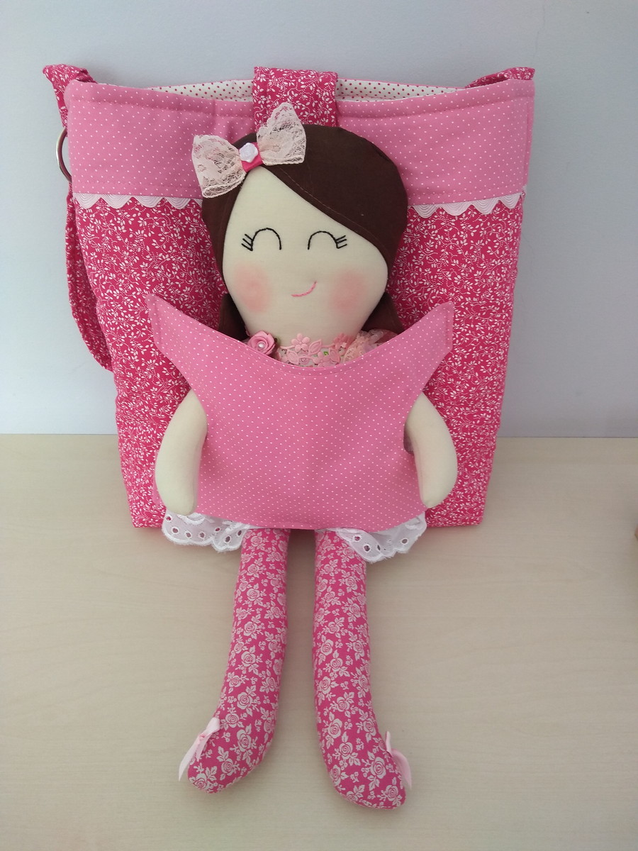 Bolsa e boneca feitas em tecido algodão