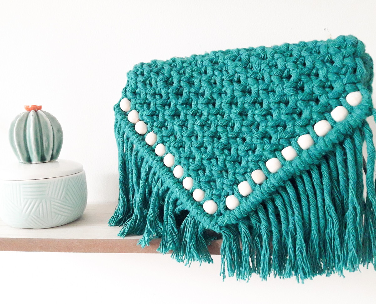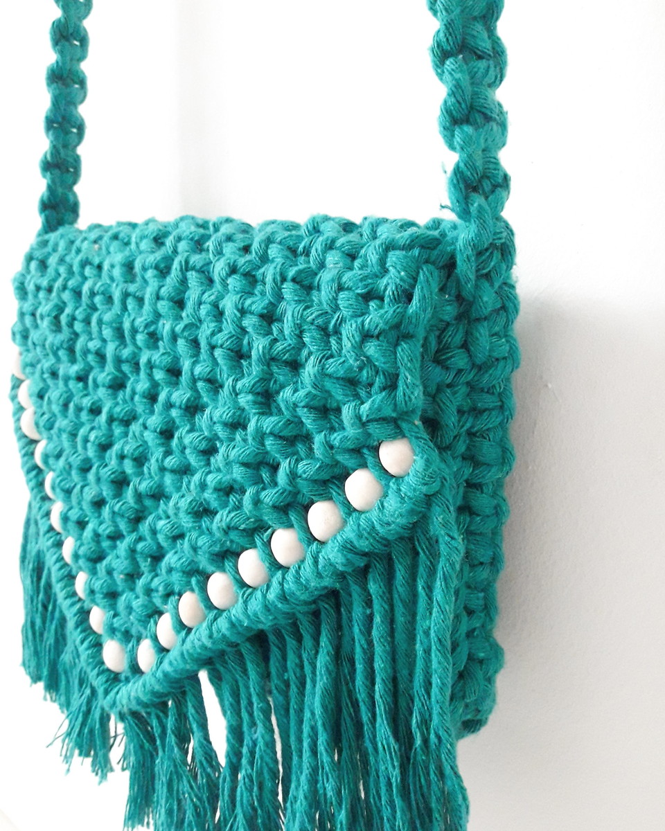 Bolsa artesanal em macramê na cor verde água escura. Pode ser confeccionada na cor de sua preferência.