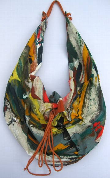 Bolsa em algodão pintada com técnica que encorpa mais o tecido.