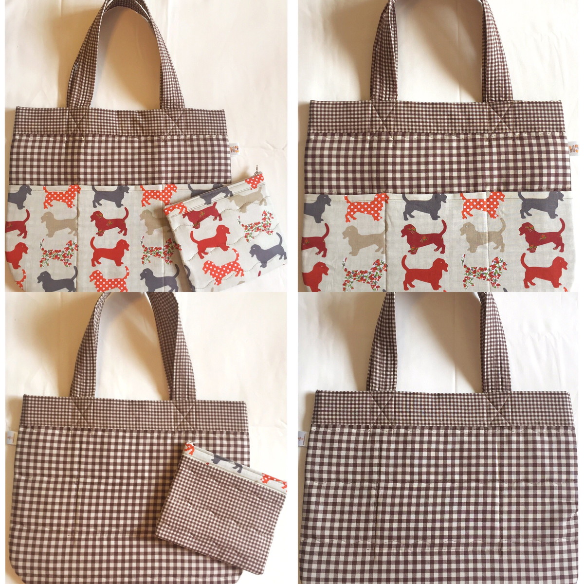 BOLSA EM PATCHWORK EM TECIDO 100% ALGODÃO COM BASE EM TECIDO COM ESTAMPA XADREZ MARROM E BEGE E DETALHES EM TECIDO COM ESTAMPA DE CACHORROS, COM ENCHIMENTO EM MANTA ACRÍLICA R1 E FORRO EM TECIDO LISO. ACOMPANHA CARTEIRINHA NO MESMO TECIDO. LARGURA APROXIMADA: 42 CENTÍMETROS E ALTURA APROXIMADA: 40 CENTÍMETROS. FECHAMENTO COM BOTÃO DE IMÃ