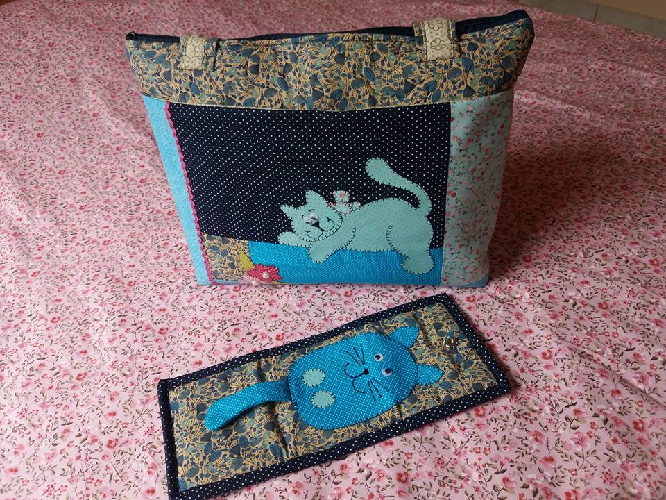 bolsa confeccionada em patchwork, tecido 100% algodão, forrada om bolso interno, medindo aproximadamente 0,50x0,45, com carteira no mesmo tema, esta ja esta vendida , mas posso confeccionar de acordo com o seu gosto e necessidade.