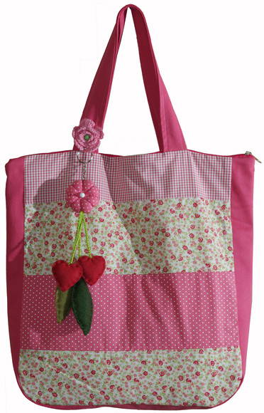 Bolsa em tricoline e brim 100% algodão. Forro 100% algodão e bolso interno. Fecho em zipper.