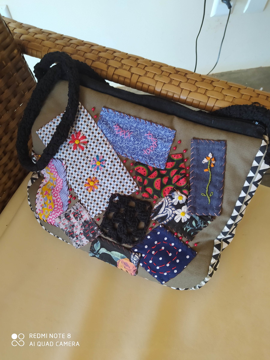 Toda feita a mão. Tecido de algodão. forrada, com bolso interno.Alça de crochet (cordão grosso) Mede 45cm x 35cm. Peça única Frete único para todos os estados - 30,00