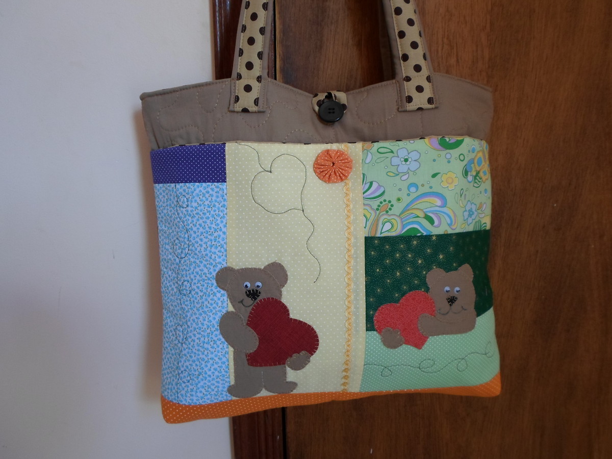 bolsa confeccionada em patchwork, tecido 100% algodão, forrada om bolso interno, medindo aproximadamente 0,50x0,45, esta ja esta vendida , mas posso confeccionar de acordo com o seu gosto e necessidade.