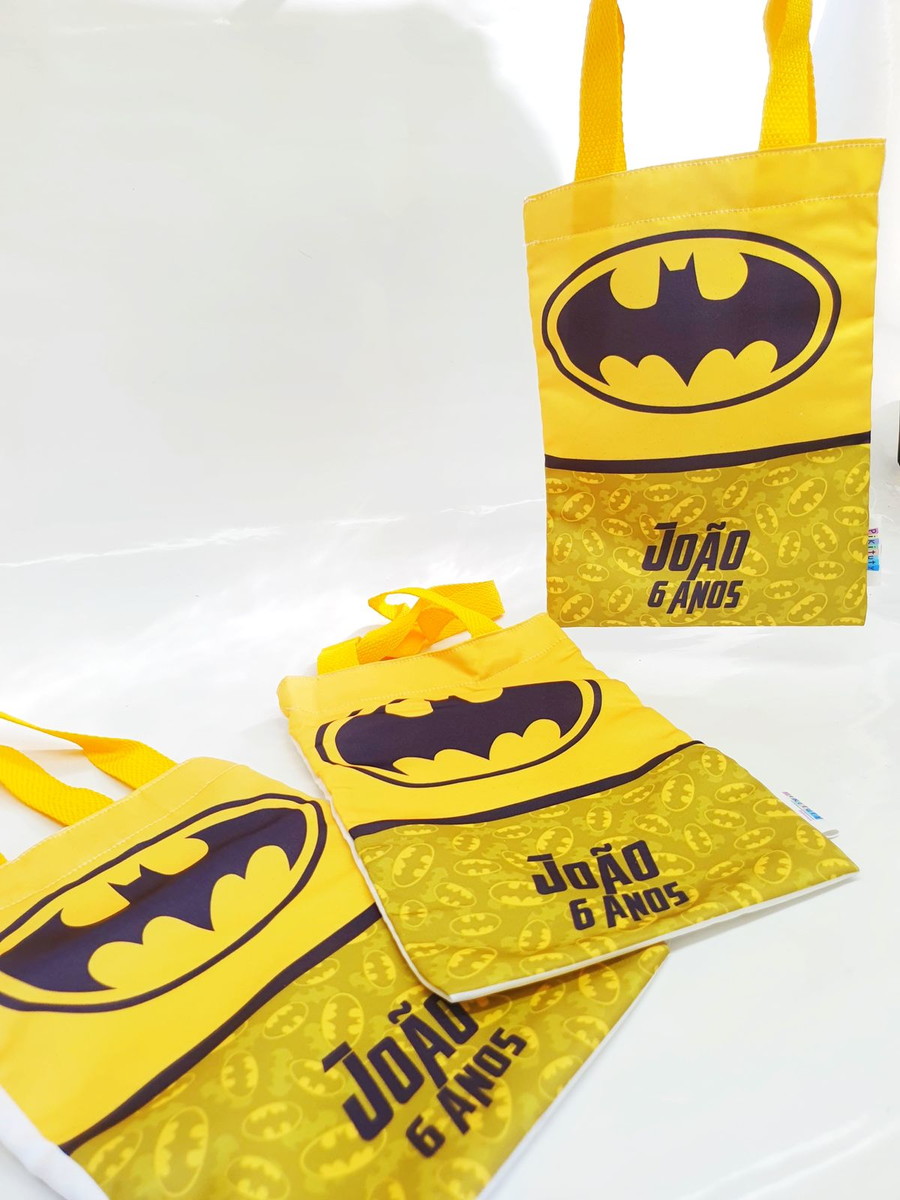 Sacola Ecobag 20x28 cm personalizada no tema da festa com alça colorida de acordo com o evento.