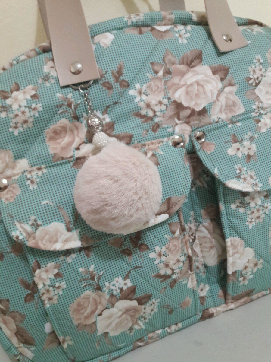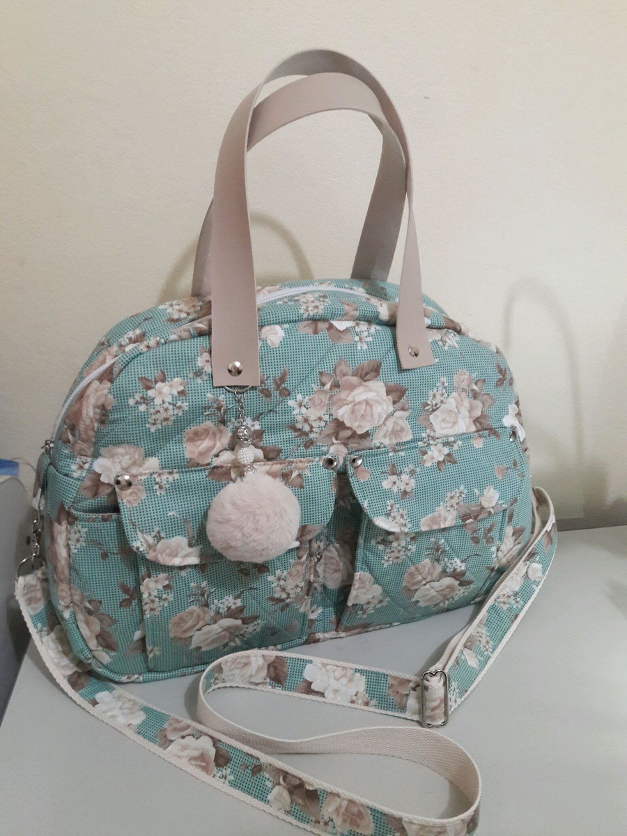 Bolsa em tecido 100%algodão espaçosa com bolsos externos e alça de couro com alças tiracolo removiveis