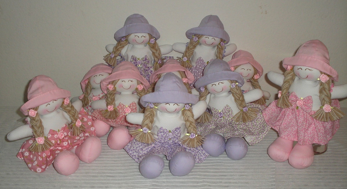 Boneca feita em tecido nobre, rica em detalhes, ideal para nichos, prateleiras, decoração de festa infantil, chá de bebes e batizados. Sentada seu comprimento diminuirá aproximadamente pela metade.