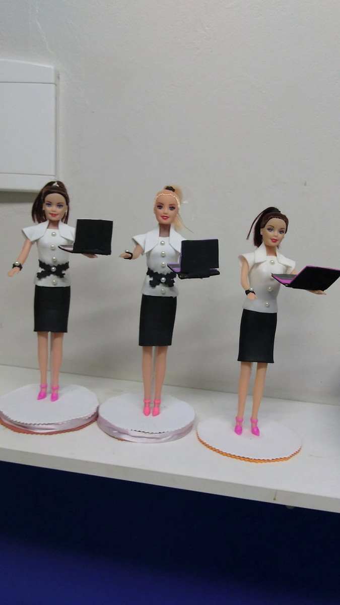 Faço bonecas com temas na cor e temas desejada podendo ser temas de aniversario ou pra decoraçao temos secretaria, enfermeira ,medicas ,professoras , noivas, etc