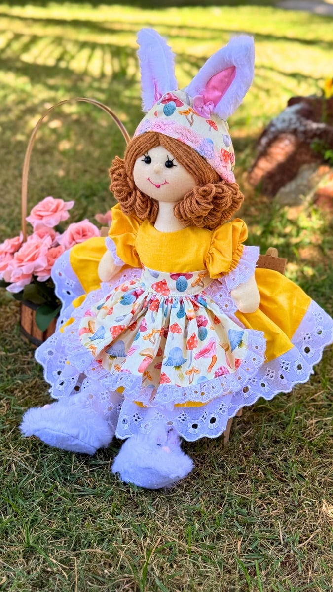Boneca de pano feita de forma artesanal, braços articulados, uso de materiais antialérgicos, resistente ao ser manuseada, própria para brincar ou decoração.