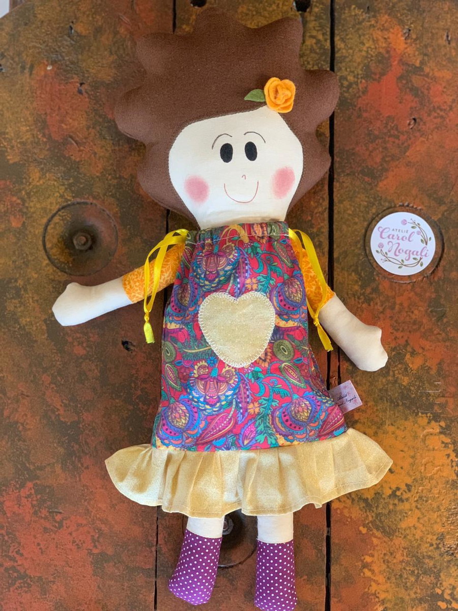 Boneca de Pano com cabelo em feltro com roupinhas que podem tirar
