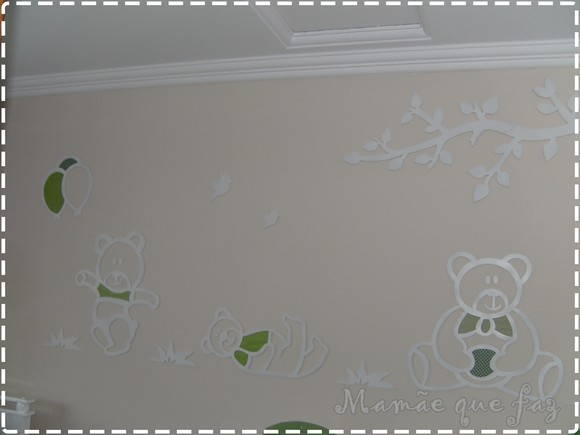 Border em MDF 3mm pintado e envernizado com tinta e verniz acrílico antialérgico. Kit contendo: 3 ursos de 50cm, 5 gramas, 1 balão, 1 galho de 1 metro e 2 passarinhos.