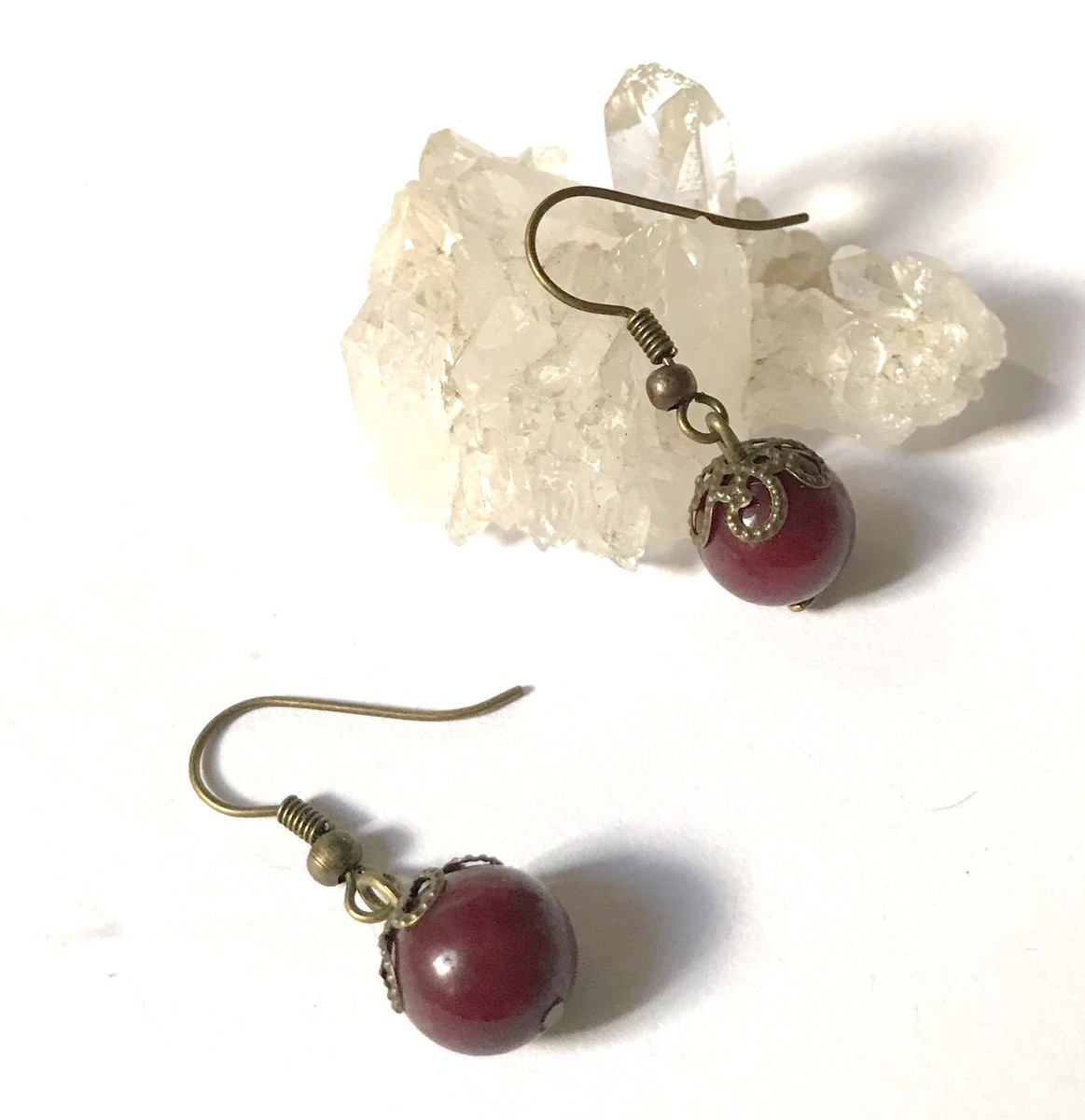 Brinco ouro velho com com Jade rubi lisa