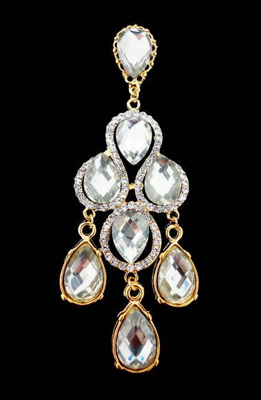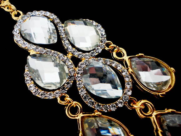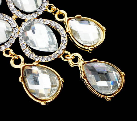 Ótima opção para festas, formaturas e madrinhas. Luxuoso Brinco dourado com strass swarovski cristal e pedras acrílicas cristal. Disponível também com as pedras em azul royal. Peça exclusiva com 9 cm de comprimento. Obs: Brinco leve e acompanha tarracha sutiã de orelha. Possibilidade de mudança para pino de pressão sob encomenda (com alteração no preço). Ref. D379