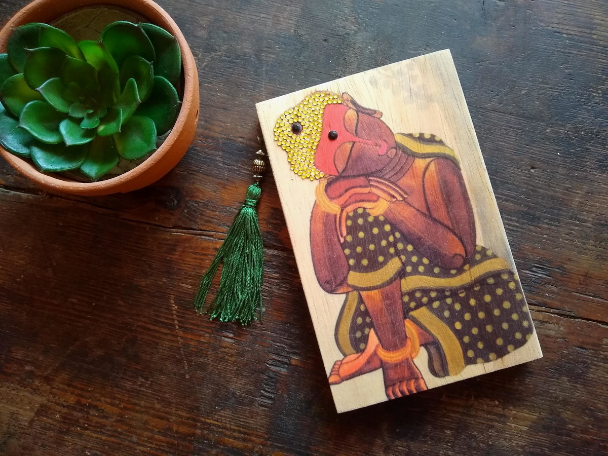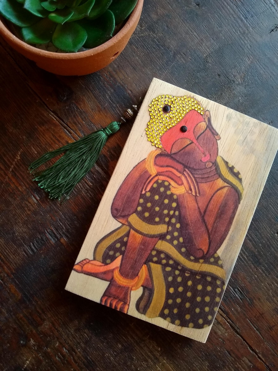 Quadro Buda trabalhado em sublimação, em madeira reciclada.