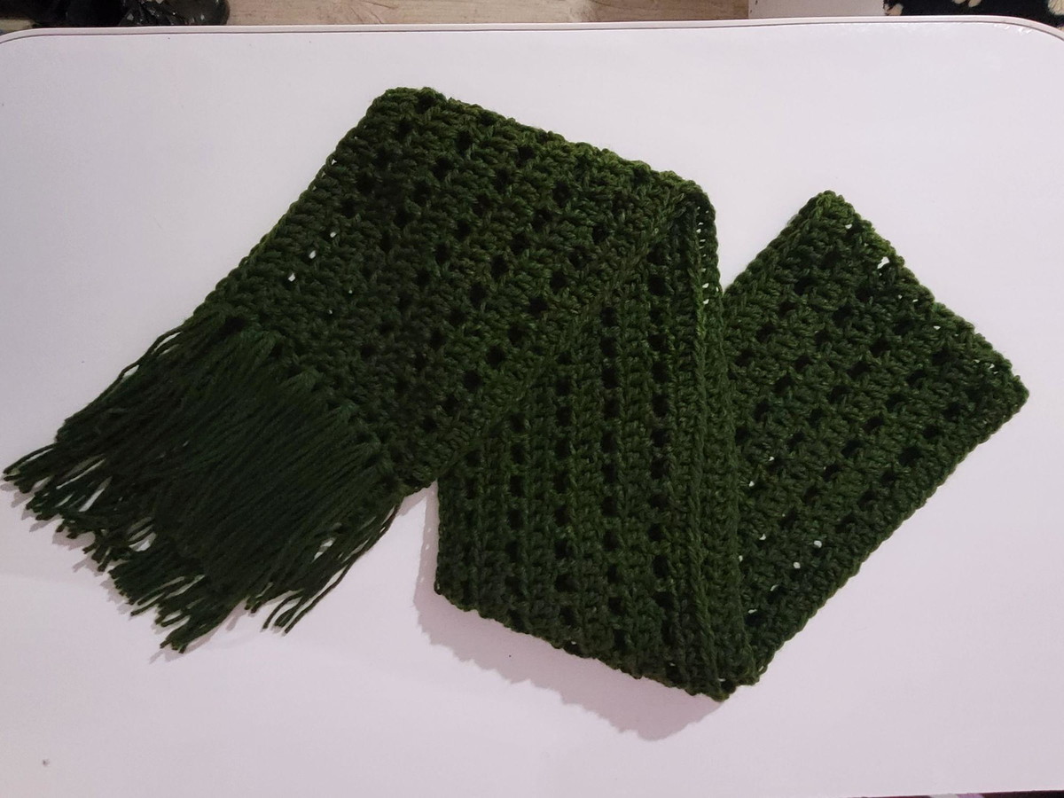 Cachecol feito a mão, em Crochê, com lã de tex 500, medindo aproximadamente 180 X 18 cm
