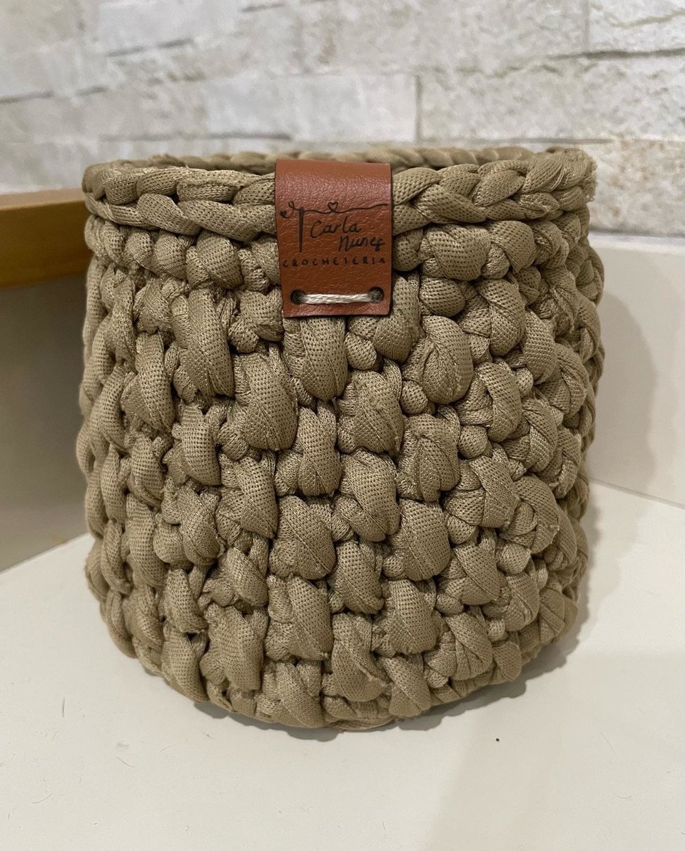 Cachepô de crochê produzido em fio de malha premium.