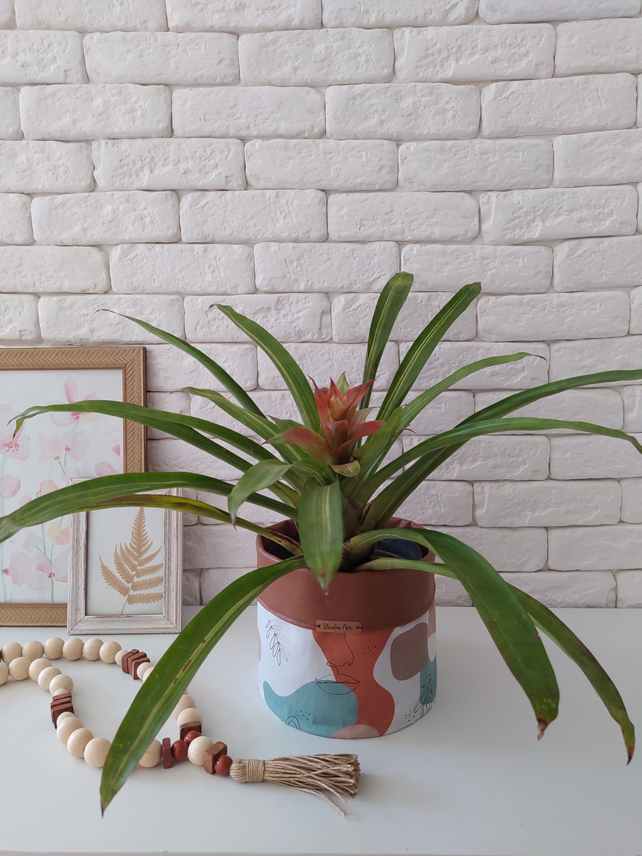 Cachepôt parte externa tecido parte interna couro eco
