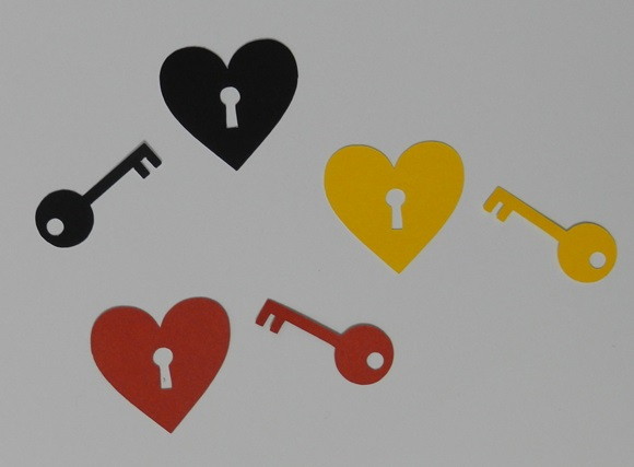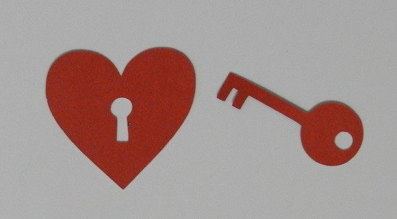 Aplique de coração cadeado com chave em papel.