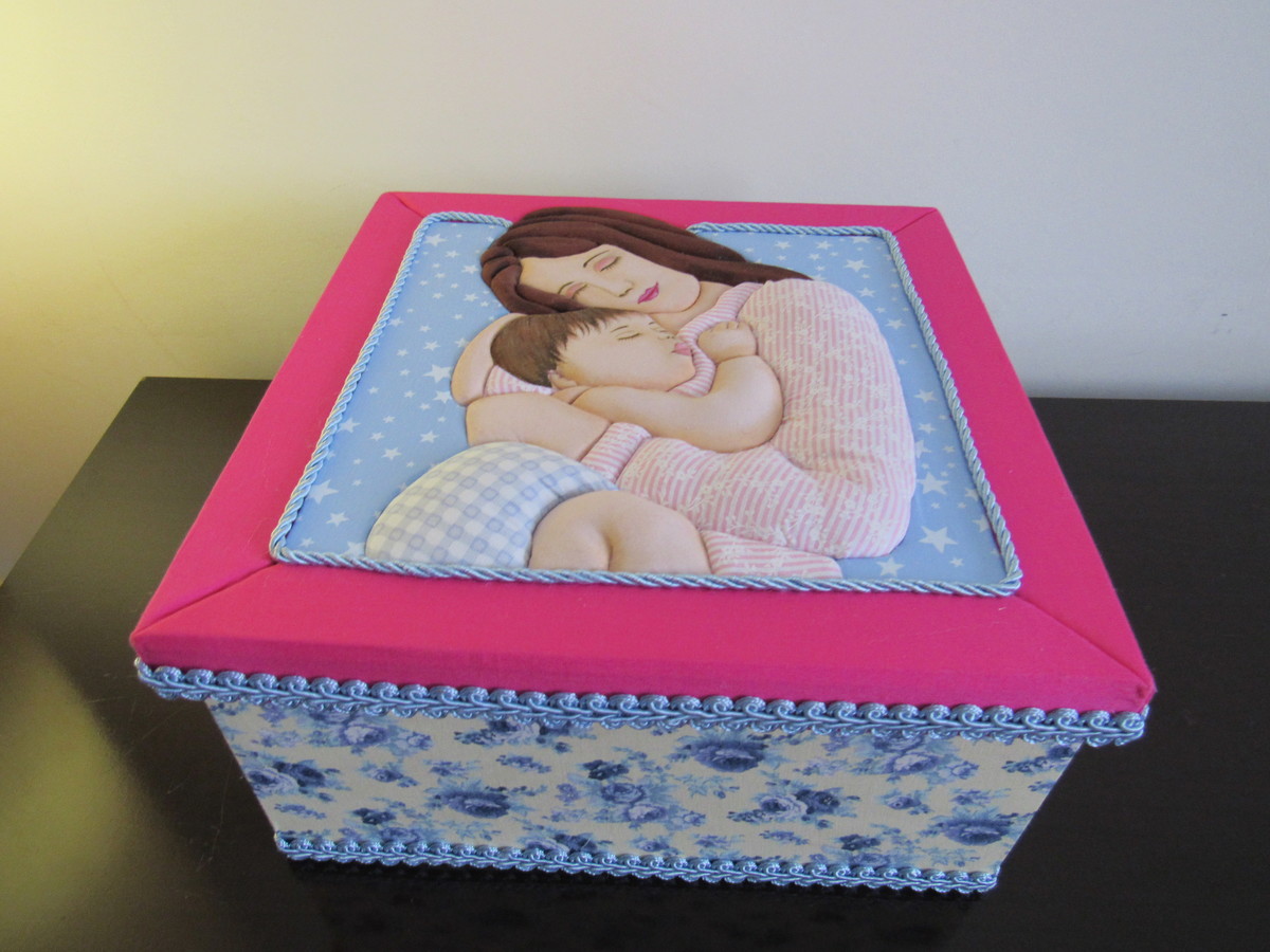 Caixa em MDF ,tampa trabalhada no patchwork embutido,revestida com tecido 100% algodão, rendas e entre outros aviamentos. Ideal para presentear a futura mamãe, vovó, madrinhas, ou até mesmo guardar itens do seu bebê.
