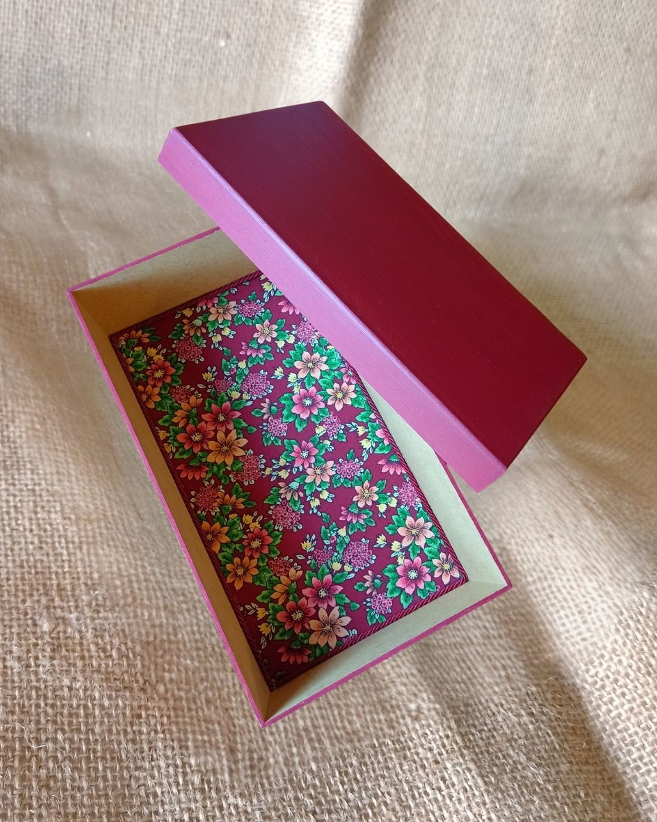 Linda caixa forrada com tecido florido, retangular. Perfeita para deixar seu presente super especial, com uma caixa linda dessa, é presente em dobro!!