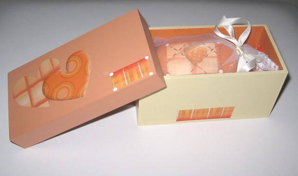 Caixa mdf pintada e decoupada. Acompanha sabonete decorado no mesmo tema envolto em saquinho de tule. As figuras aplicadas sempre misturam padrões geométricos com corações ou flores.