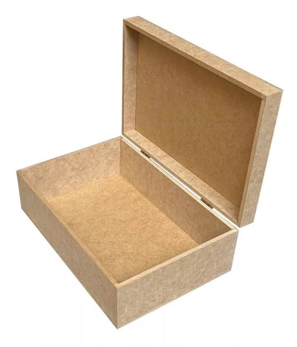 caixa retangular em mdf cru de 6mm com dobradiças sem fecho ideal para presente e outras ocasiões.