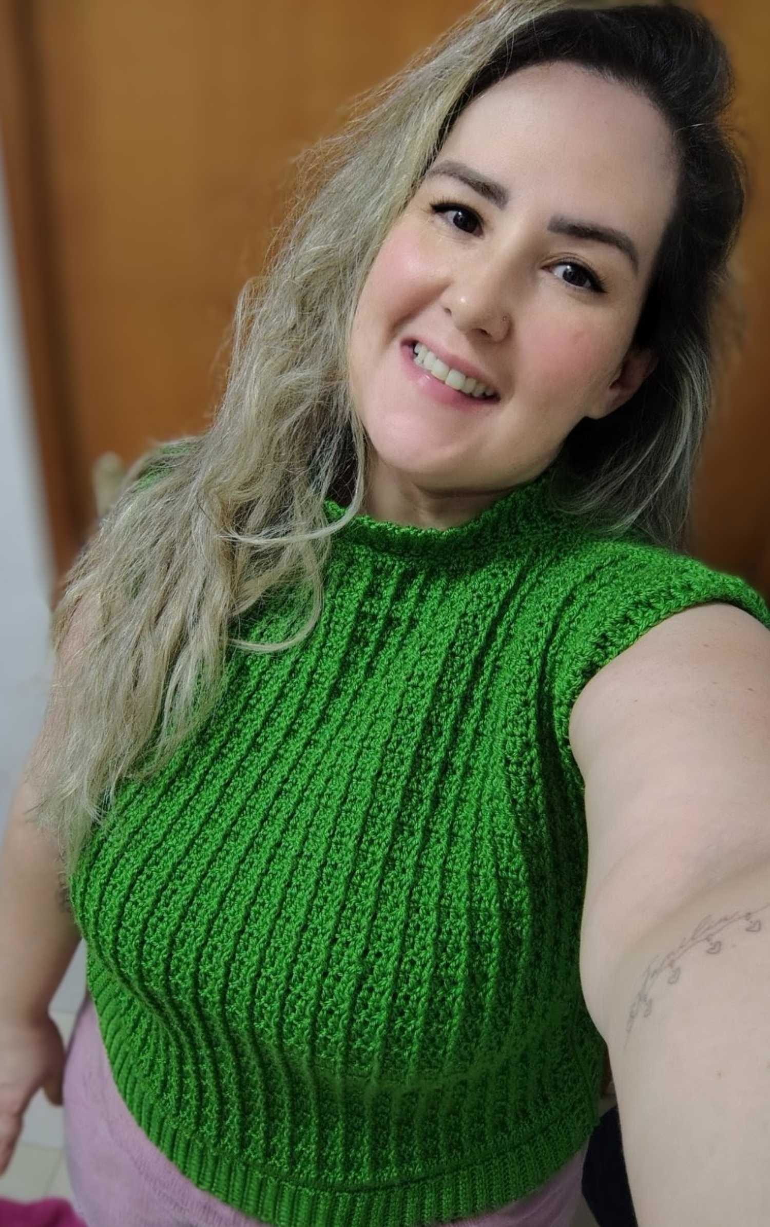 Conjunto de Crochê Top com Bojo Short Cintura Alta Forrado